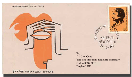 The Birth Centenary of Helen Keller was marked in this FDC issued by