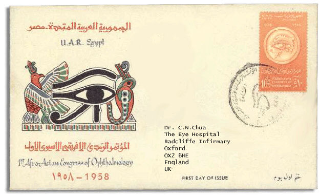 This FDC was issued in 1958 to mark the 1st Afro-Asian Congress of Ophthalmology.