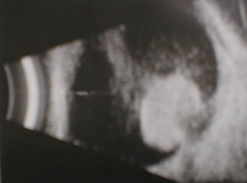 or retinal detachment and scleral invasion.