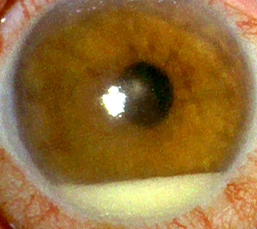 decreased vision and moderate pain.