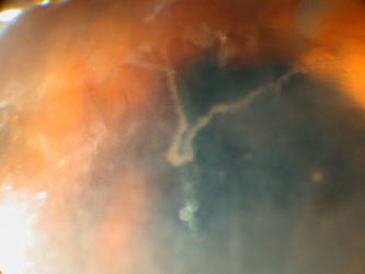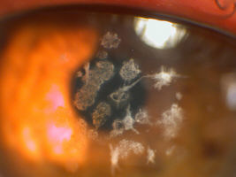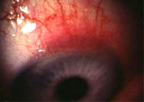 e. RGP (rigid gas permeable) contact lens wear is a cause