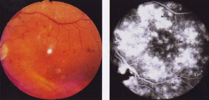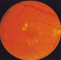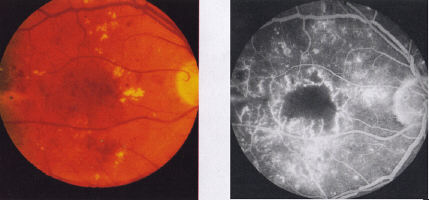 2.4.1.4 Mixed maculopathy Many cases do not fit exactly into the groups described above. Frequently, there is combined pathology particularly of diffuse oedema and ischaemia. Nevertheless, classifying the maculopathy according to its predominant features is useful form a therapeutic prognostic point of view. |