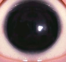 completely or rudimentary. The edges of the lens are clearly visible. There may be cataract with or without