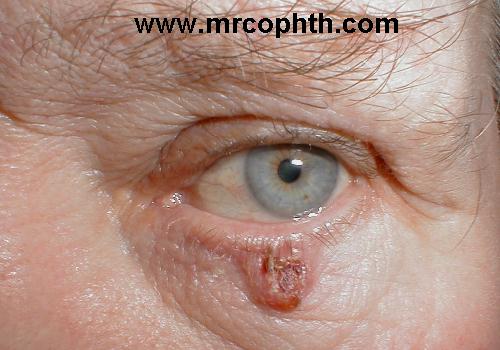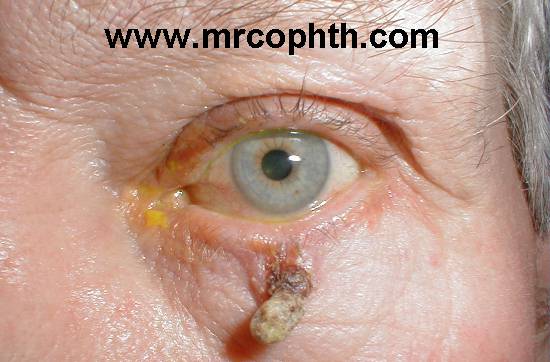 the left lower lid. Examination revealed a cutaneous horn with underlying