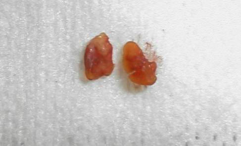 The picture shows two pieces of dacryoliths obtained