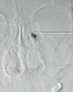 without drainage into the nasal cavity. In the last frame, dye shows up