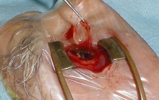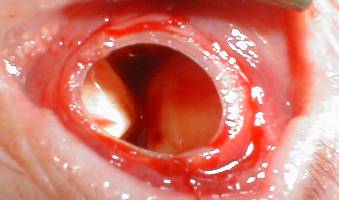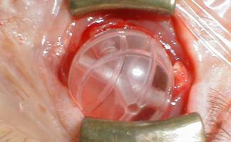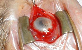 ball. The sclera is closed with 5/0 virryl. The conjunctiva is closed with