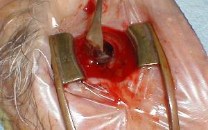 the evisceration begins with 360 degrees of periotomy. |