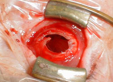 The uveal content is removed with