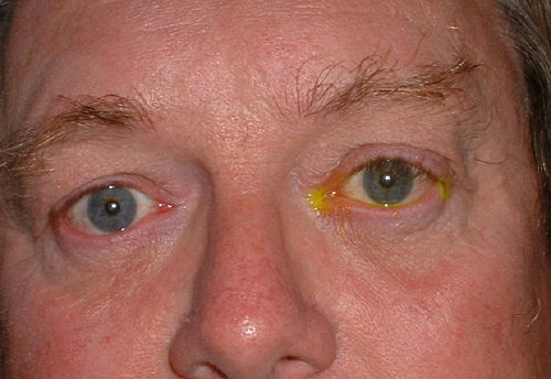the pillow was always stained with ocular discharge. A diagnosis of left