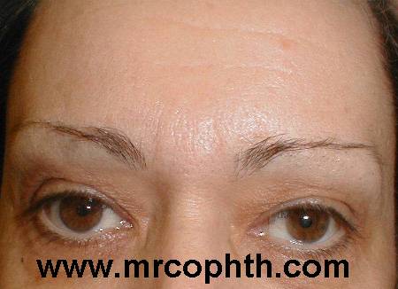 Patient 2: additional folds of skin above the skin crease. Again the smooth forehead. |
