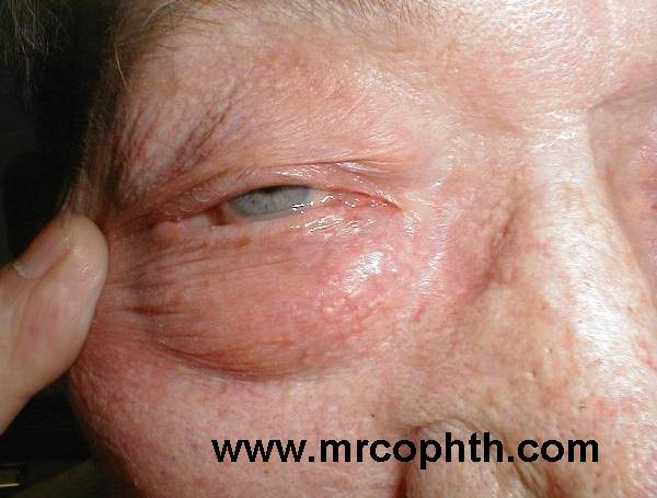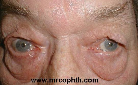 of both lower lids. Tightening of the lower lids as seen in the lower picture