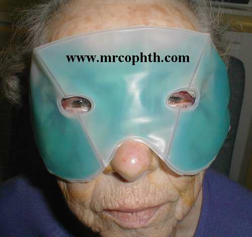 Ice pack in the shape of eye-shields is useful for reducing post-operative haemorrhage and swelling.