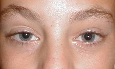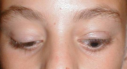 He is pleased with the result but on down-gaze there is failure of the left eyelid to relax resulting in an asymmetrical lid height. This feature is common in patient with congenital ptosis due to the presence of dystrophic levator and can become exacerbated following surgery. The patient and parents should be told about this potential problem to avoid unhappiness with an otherwise satisfactory surgical outcome. |