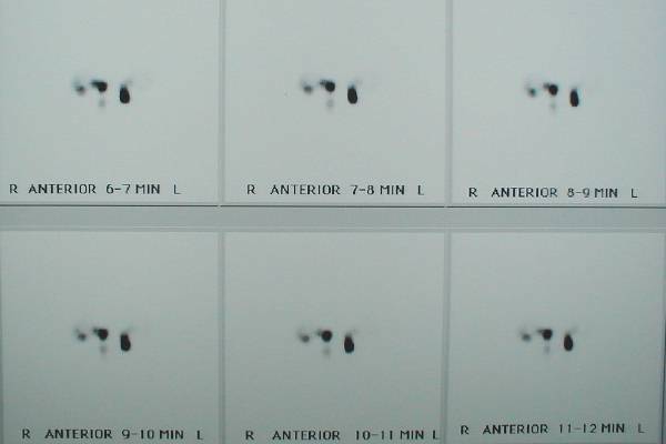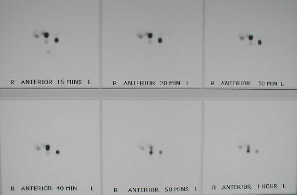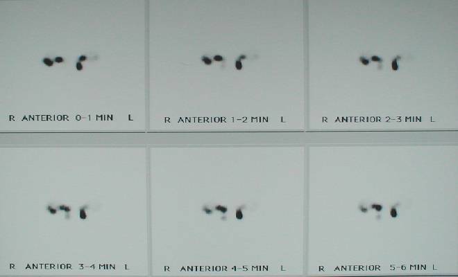 Lacrimal sintigrams were ordered and the radiologist's report was as followed: