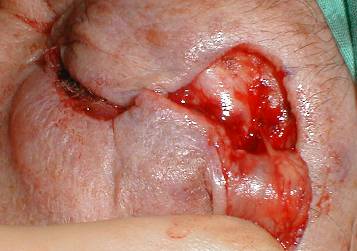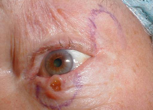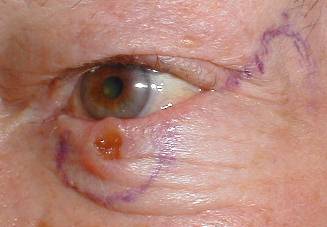 involving the margin. The tumour was confirmed on punch biopsy. The defect