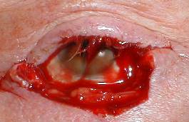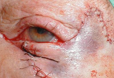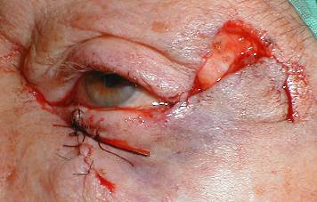 by dissecting through the skin and the orbicularis. Cantholysis is performed