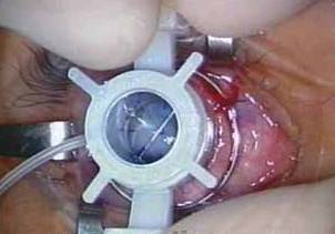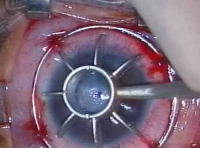 Picture showing the use of scleral support ring and corneal