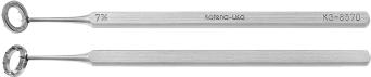 Corneal markers. The marker is used to mark the centre of the cornea as an aid to centre the trephine. After marking the cornea, check with the callipers to make sure that the marking is equidistant from the superior and inferior limbus.