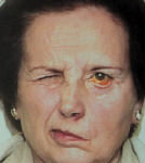 Left lower facial nerve palsy. |