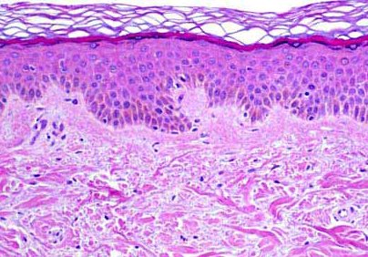 cytoplasm pink or red. The following specimen shows a normal skin stained