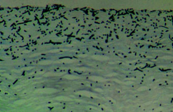 Corneal infected with Fusarium showing hyphae. The cornea