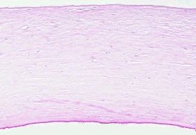 typically shows absence of guttata and the Descemet's membrane is not thickened.