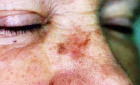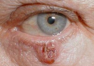 Shown clinical pictures of basal cell carcinoma, squamous cell carcinoma,