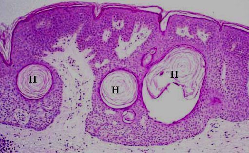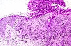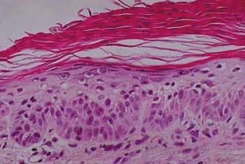 the keratin layer, this is a sign of decreased turnover time of the epidermis)
