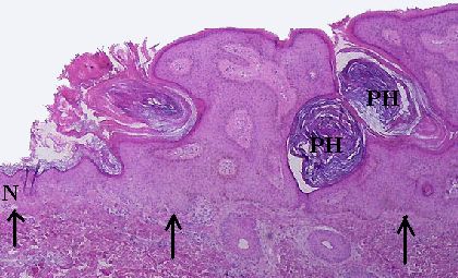 hyperkeratosis, parakeratosis, dysplasia and solar keratosis. |