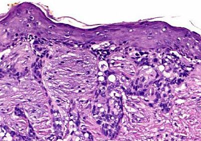 can be difficult to distinguish from squamous cell carcinoma. The presence