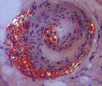 light. The picture below is a section of blood vessels with amyloid viewed