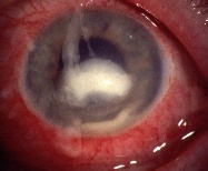 This 50 year-old female contact lens wearer presented with a one-day history of severe right eye pain. She attended the eye casualty two day earlier with a contact lens-related corneal abrasion and was prescribed topical chloramphenicol qds.