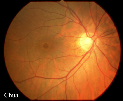 | History: A 80 year-old woman who was wheel-chair bound because of rheumatoid arthritis presented with a two month history of decreased right vision. The vision was 6/60 in the right eye and 6/12 in the left eye. Fundoscopy revealed a right full thickness macular hole. The left eye has moderate cataract with normal macula. The possibility of surgery was discussed. As the patient was happy with her remaining vision and the fact that she would find posturing difficult after the operation; surgery was not performed and she was discharged from the clinic. | |||