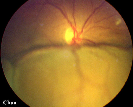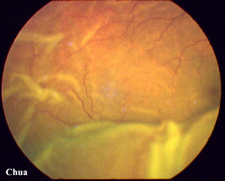 visual acuity was 6/9 and the fundoscopy revealed a bullous inferior retinal