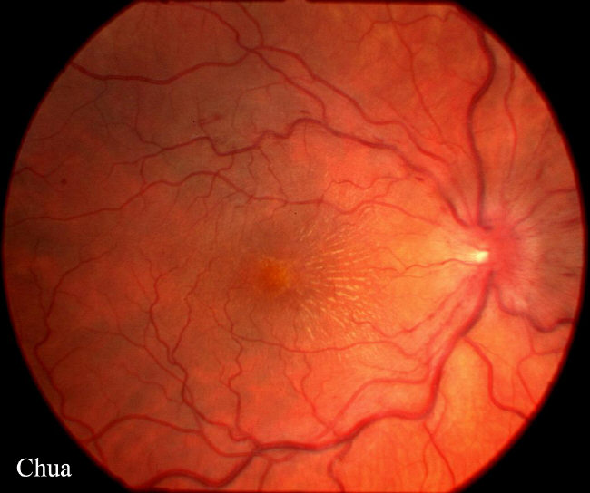 | History: A 18 year-old hypertensive woman developed a right blurred vision of 2-day duration. She had had a flu-like illness two weeks earlier and recovered completely. Her vision was 6/36 in the right eye and 6/6 in the left eye. There was a right relative afferent pupillary defect. Fundoscopy showed optic disc swelling and a macular star. The full blood count, ESR, glucose and electrolytes were normal. The most likely diagnosis was post-viral stellate neuroretinitis. No treatment was given and the vision returns to normal 2 months later. | |||