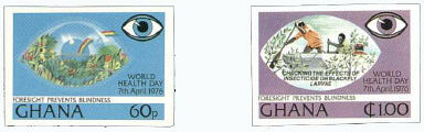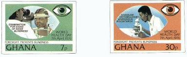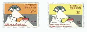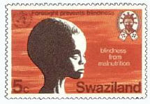 | Stamps featuring blindness from malnutrition mainly vitamin A deficiency. |