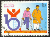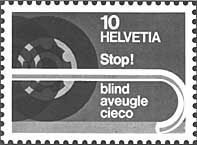 (Guide dog, Braille and white stick are the three most common items used to symbolize blindness on stamps.) |