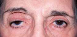 Look at the picture above. What is the most likely cause for this woman's upper lid appearance?