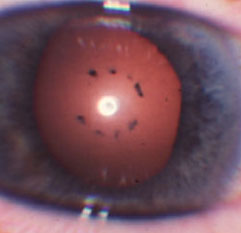 What is likely to be responsible for this lens appearance?