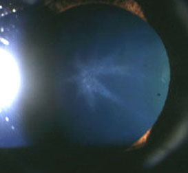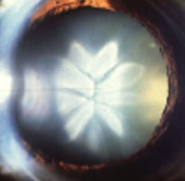 Suggest two possible causes for this lens appearance. Does it affect the